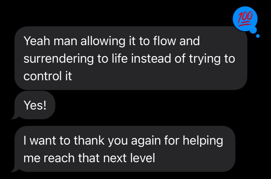 Growth happens between sessions, too. You’ll get unlimited text/voice messaging support whenever you need it—whether you’re celebrating a breakthrough or facing a tough moment, I’ll be there to guide you. -